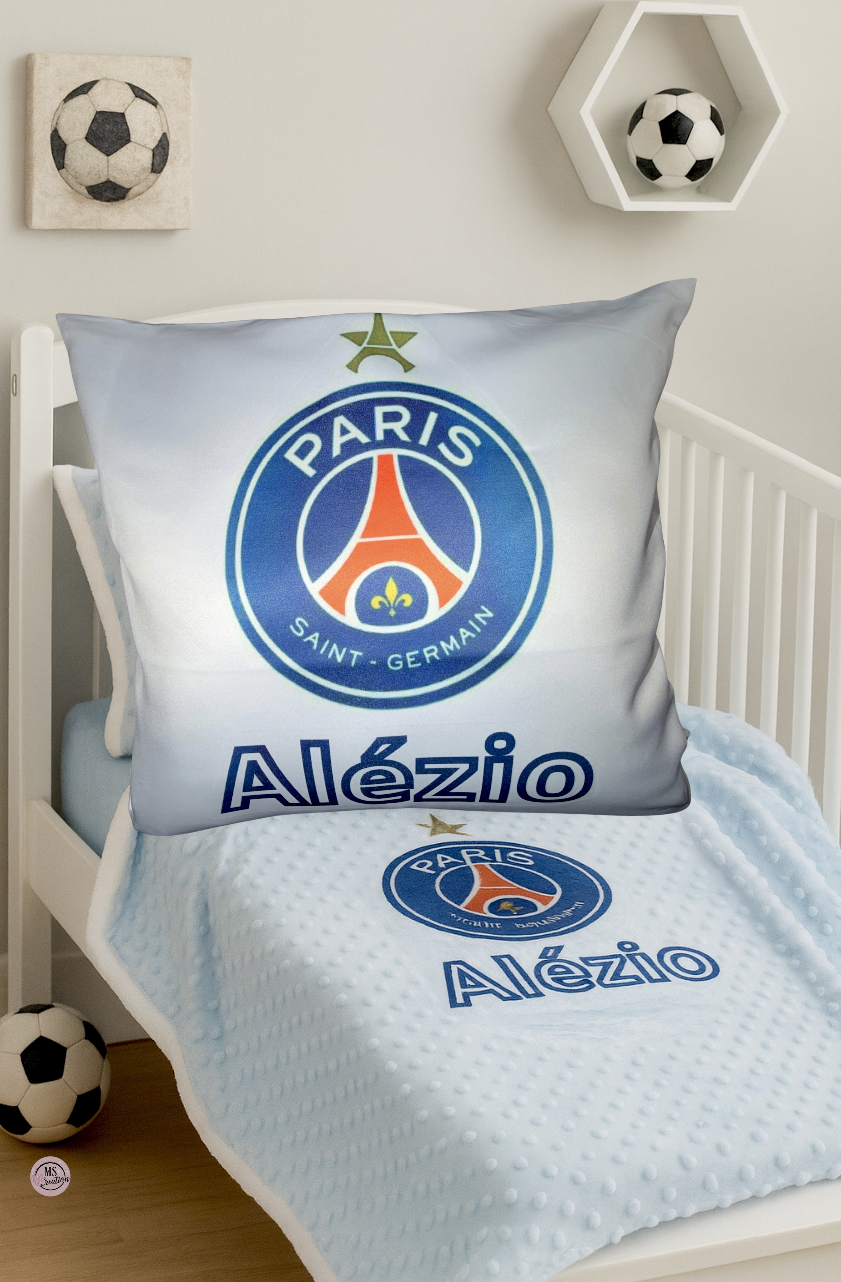 🛏️ Coussin Personnalisé & Couverture Minky – Équipe préférée + Prénom