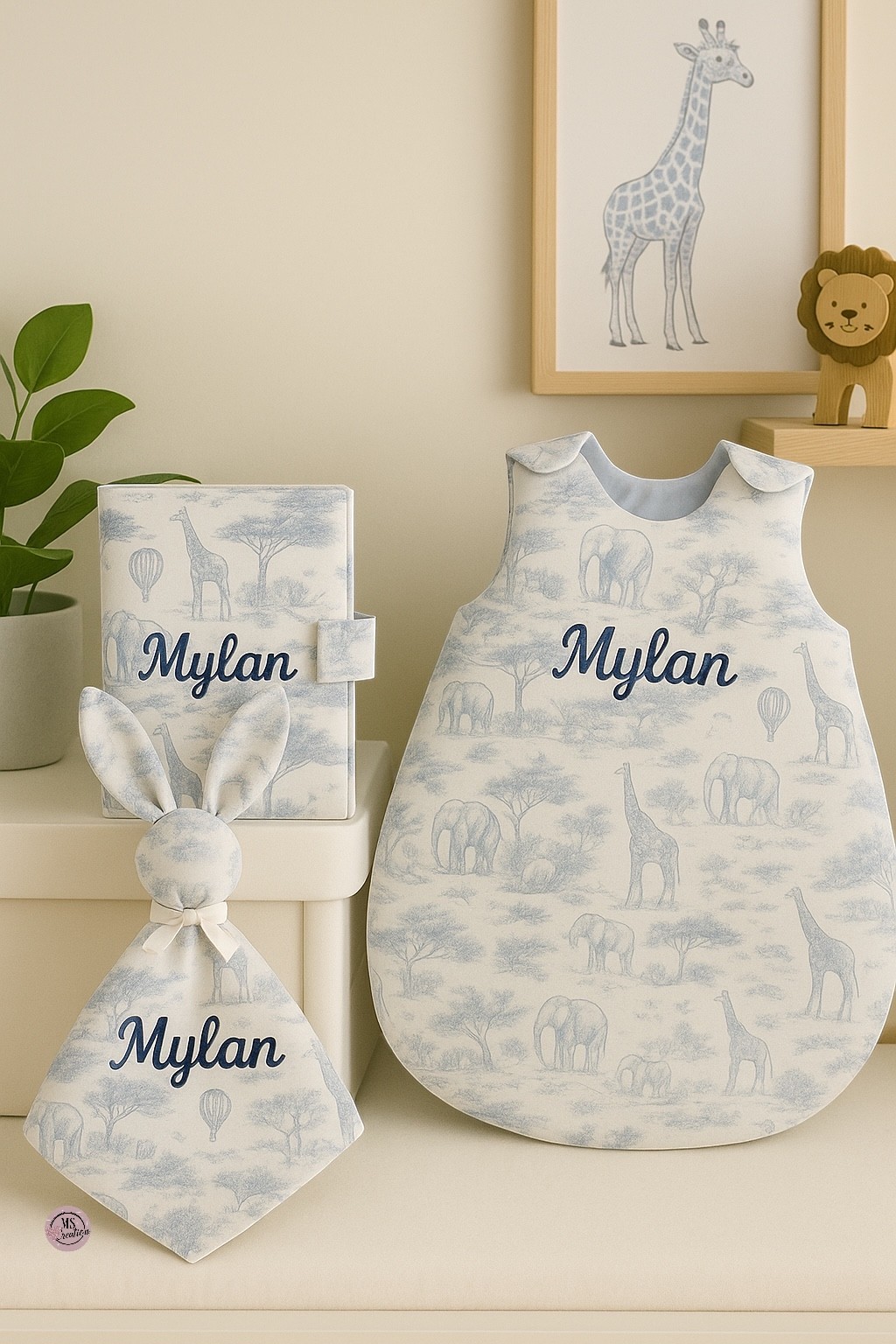 Offrez à bébé un univers doux, chaleureux et entièrement personnalisé grâce à notre Collection Jungle. Réalisée en gaze de coton haute qualité, reconnue pour sa douceur et son confort, elle met en avant un magnifique motif toile de Jouy moderne : girafes, éléphants, arbres et ballons… Un rendu tendre, naturel et intemporel, parfait pour accompagner bébé dès la naissance