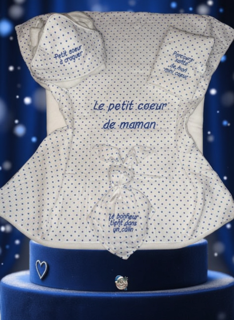 Découvrez notre coffret naissance thème Cœur, un ensemble tendre, chaleureux et entièrement brodé avec de jolies phrases pleines d’amour ❤️