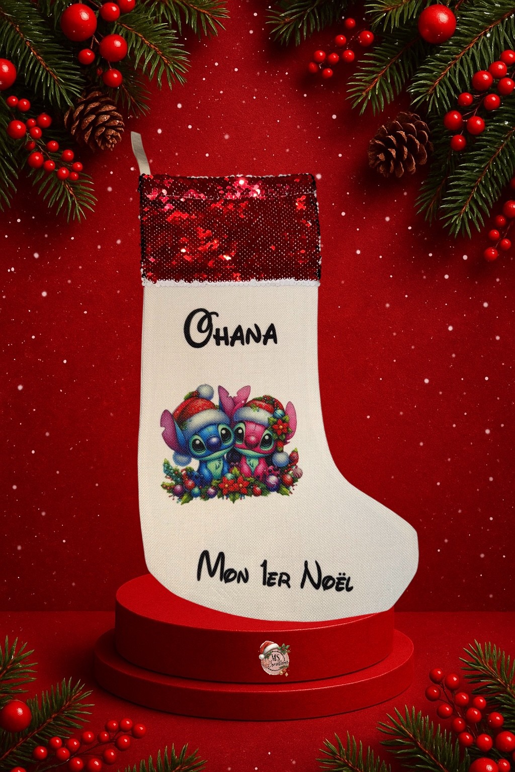 Sublimez vos fêtes de fin d’année avec notre Chaussette de Noël Stitch et Angel — une création unique signée MS Création. Conçue dans un esprit féerique et festif, elle apportera une touche de magie et de douceur sous votre sapin ou au coin de la cheminée. Idéale pour glisser petits cadeaux, friandises ou décorations, elle saura ravir petits et grands.