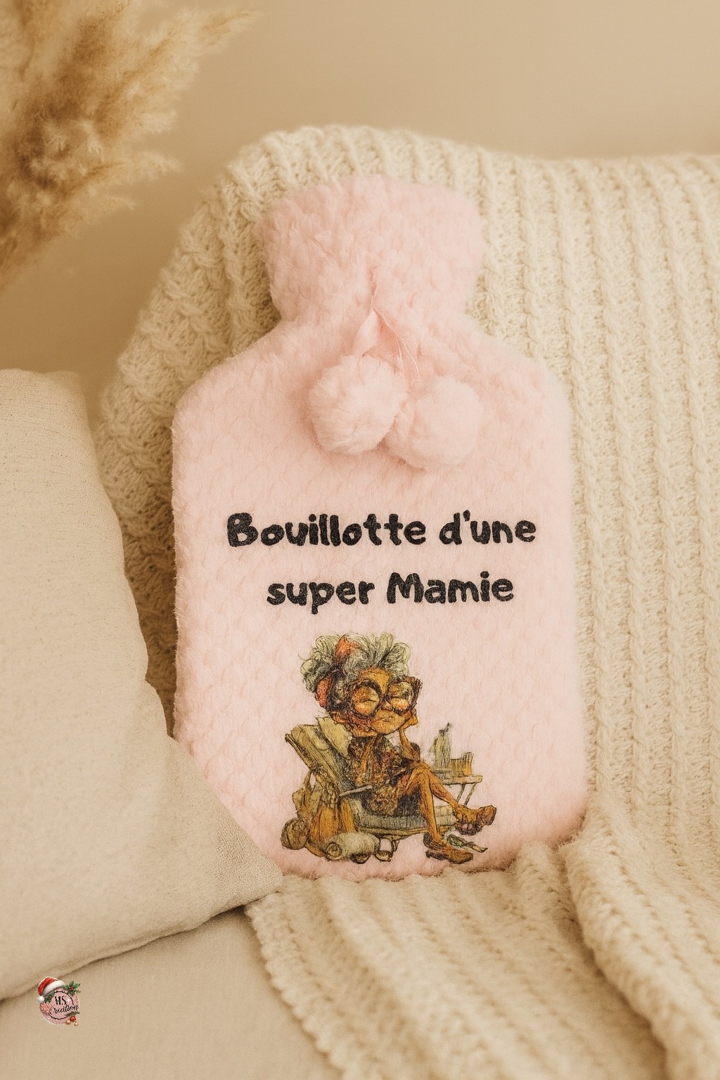 ⭐ Bouillotte 2L avec Housse Personnalisée – “Super Mamie”