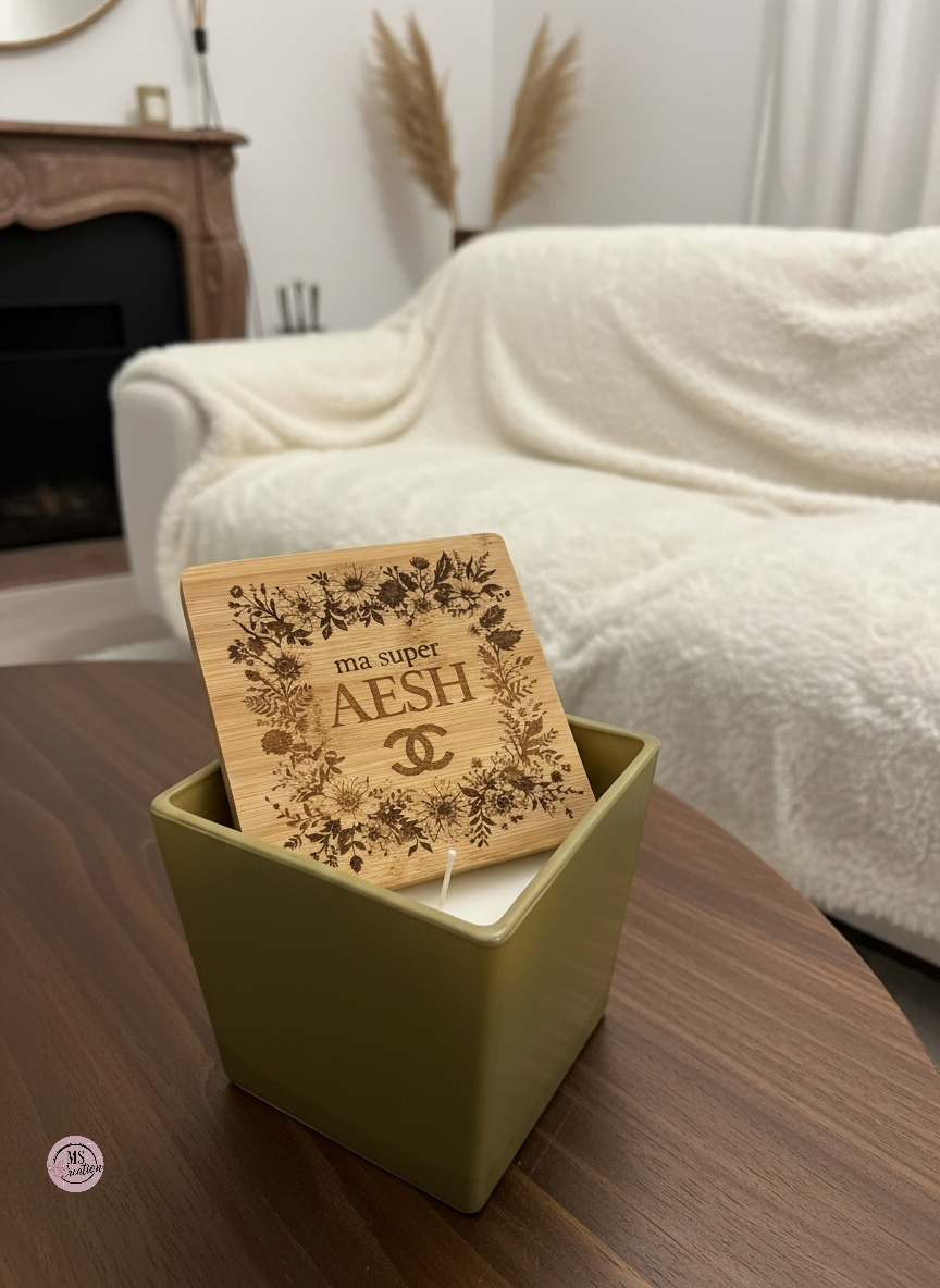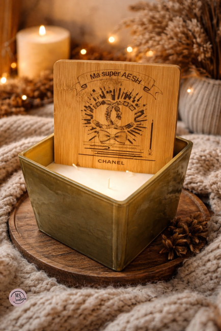 🕯️ Bougie personnalisée avec couvercle gravé – Cadeau idéal pour maîtresse / nounou / marraine