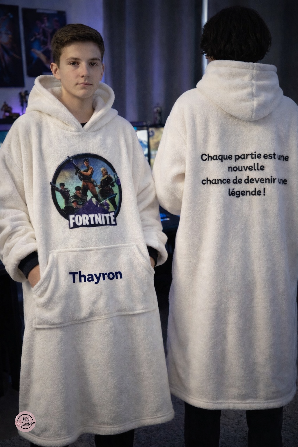 Ce poncho est personnalisable avec le motif et le prénom de votre choix, imprimés avec soin pour un rendu durable et de qualité.