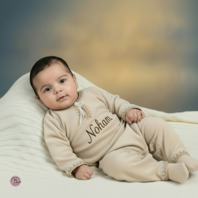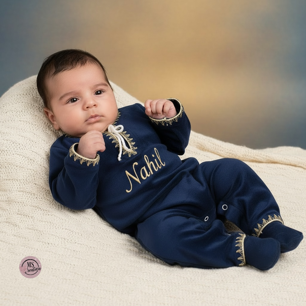 ✨ – Pyjama bébé en velours sans pieds brodé ✨ 🌙