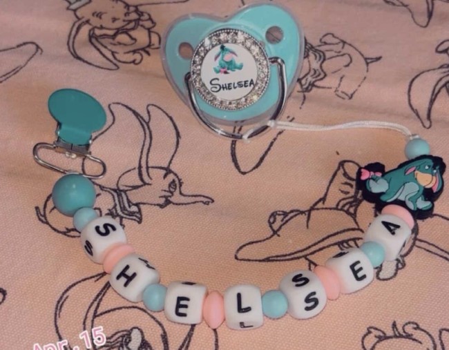 Avec clip silicone rond rose plus perle phosphorescent lettre